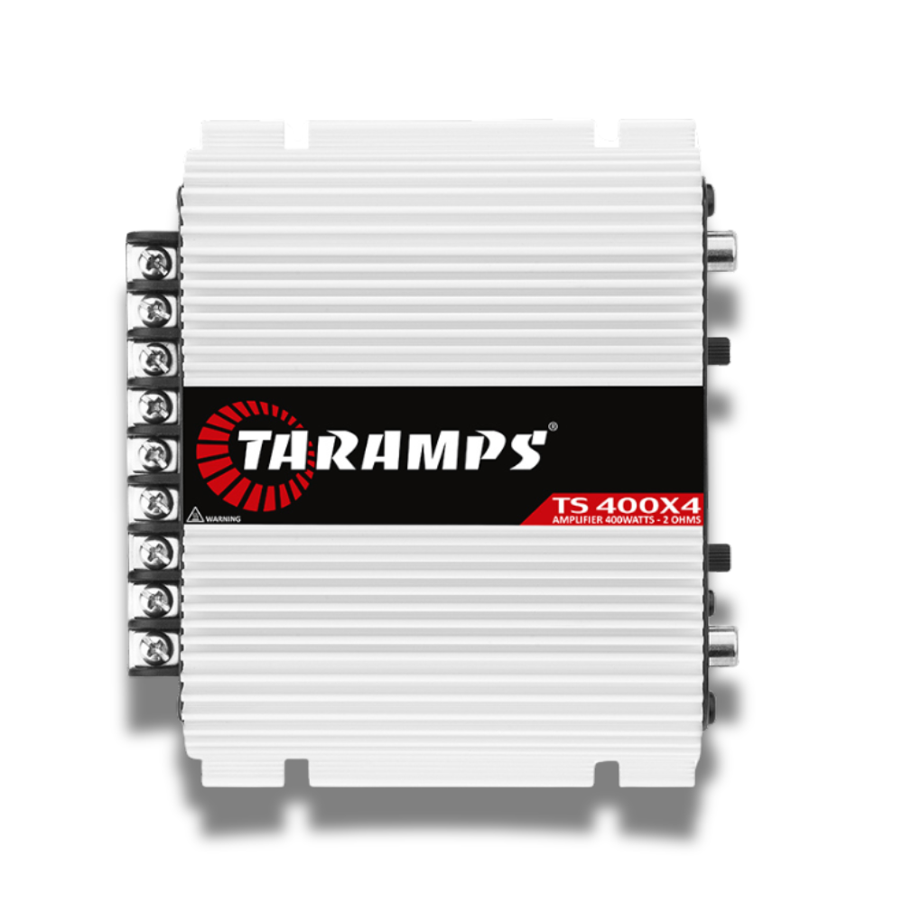 O módulo amplificador TS 400×4 da Taramps foi desenvolvido com a mais alta performance pros mais variados tipos de sistemas de som automotivo. É multicanal, sendo 4 canais de 100 Watts RMS, com potência máxima de 400 Watts RMS e com impedância de 2 Ohms. O TS 400×4 é FULL RANGE tocando todas as frequências na medida certa para você. Possui proteção térmica e contra curto-circuito, além do LED indicativo e crossover.